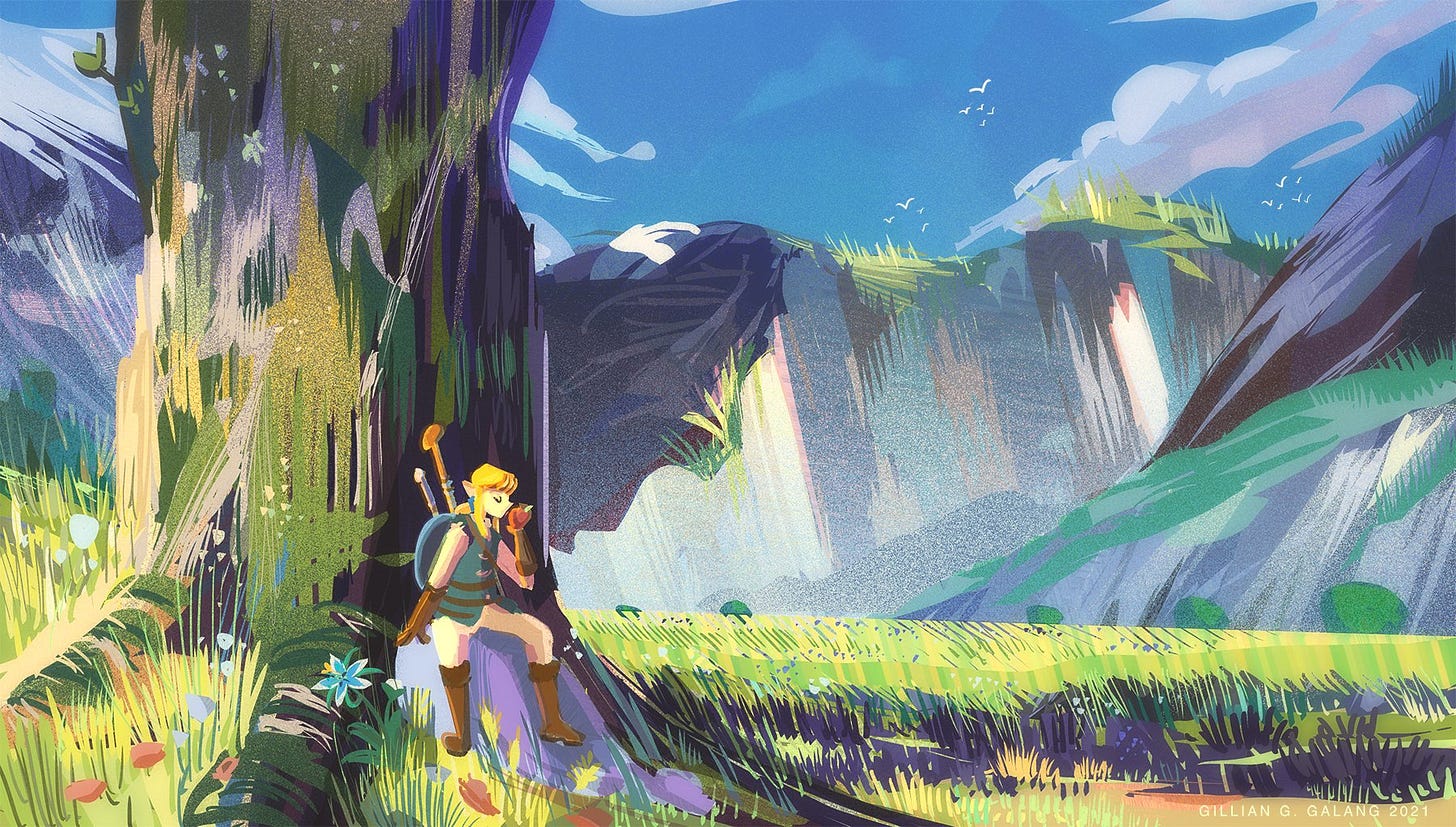This expressive landscape illustration of The Legend of Zelda: Breath of the Wild is by Gillian Galang, an environment artist from Bulacan. This artwork is one of three landscapes inspired by the screenshots she took of the game.